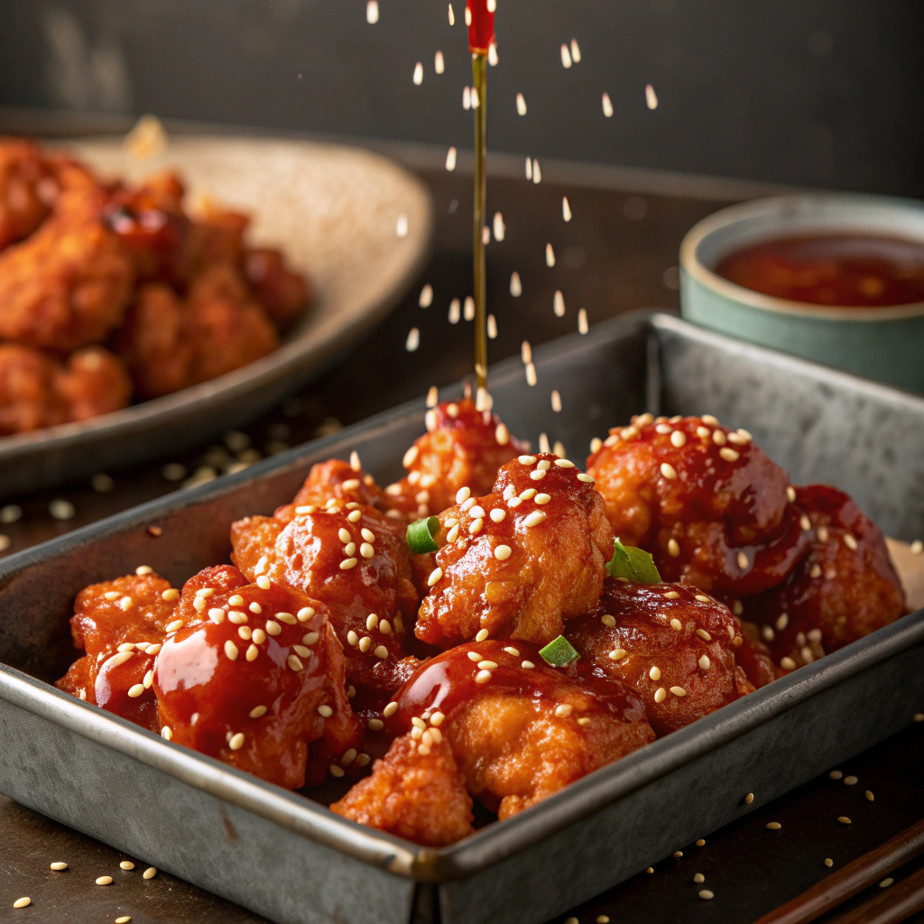Korean Fried Cauliflower takes inspiration from Korean fried chicken — famous for its ultra-crispy coating and sweet-spicy glaze. Instead of chicken, we use cauliflower florets, which turn out just as satisfying thanks to the air fryer. The gochujang sauce gives it that fiery, umami kick, while a drizzle of honey and sesame oil rounds out the heat with caramelized depth.